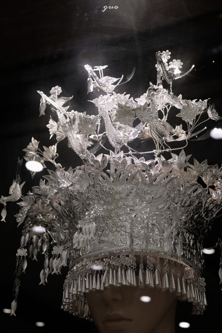 苗族银饰:苗族银饰是多元文化交流的载体之一。苗族银饰可分头饰、颈饰、胸饰、手饰、盛装饰和童帽饰等,由苗族银匠精心制作。广州应用科技学院 郭悦晴/摄