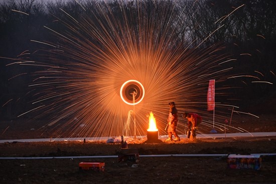 打铁花:打铁花是流传于豫晋地区民间传统的烟火,国家级非物质文化遗产之一。这是中国古代匠师在铸造器皿过程中发现的一种民俗文化表演技艺,始于北宋,至今已有千余年历史。开封打铁花更被誉为黄河流域十大民间艺术之首。江苏师范大学 陈力/摄