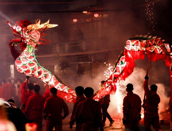 龙舞(乔林烟花火龙):乔林烟花火龙俗称“烧龙”,它始兴于明代,是广东揭阳的一种民间艺术活动。 作为传统龙舞的表现形式之一,乔林烟花火龙风格粗犷、威猛、豪迈,是中国龙文化的一种独特体现。华南师范大学 谢霖/摄