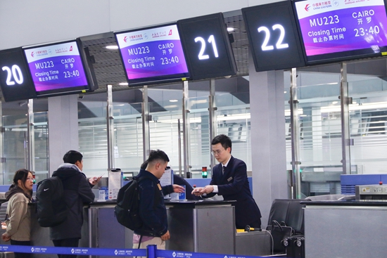 近日,MU223“上海-开罗”航班从上海浦东国际机场起飞,搭载232名旅客开启飞往埃及的首航之旅。