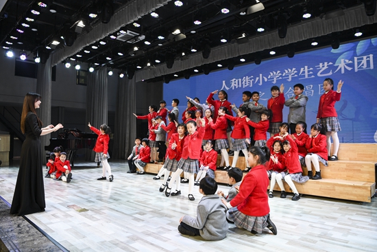 1月11日,重庆市渝中区人和街小学合唱社团学生在排练节目。重庆市渝中区积极贯彻落实“双减”政策,按照高质量服务与减负提质相结合的原则,全面推进中小学生课后延时服务工作,引导各中小学校充分利用学校管理、人员、场地、资源等优势,开展艺术、体育、科技等丰富多彩的社团活动,满足学生个性化、多样化需求,促进学生全面发展。新华社记者 王全超/摄