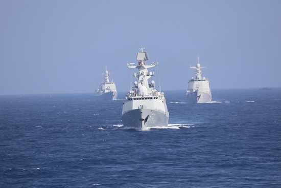 近日,南部战区海军某支队组织舰艇编队开展实战化训练。图为编队航行训练。温彬/摄