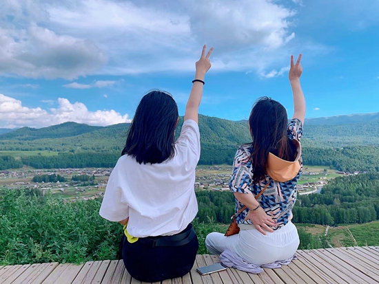 2022年7月,王梦琳(左)和婆婆在新疆旅游时的合影。本版图片均由受访者提供