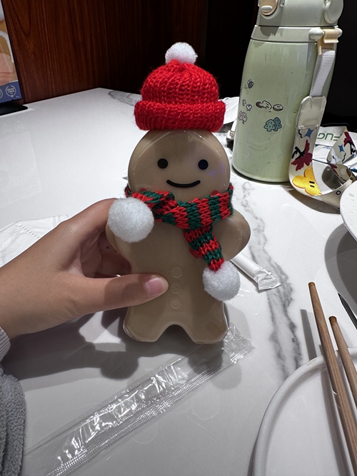 癌症患者有一些饮食禁忌,王梦琳几乎不喝奶茶。但是这次去东北,一家餐厅赠送奶茶,装奶茶的瓶子是一个卡通人型,还戴着红色毛线帽,围着红绿相间的围巾。王梦琳被瓶子可爱的外表吸引,忍不住喝了一次奶茶,并把可爱的瓶子留了下来,带回家里。在明天或者意外到来之前,她对生活的热情从未消退。