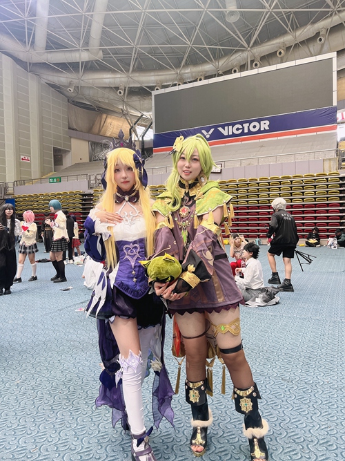 2023年10月的国庆假期,王梦琳(右)在等腿部骨穿刺的病理结果期间,在江苏盐城参加了一次漫展。王梦琳旁边的是她的丈夫季理15岁的表妹。