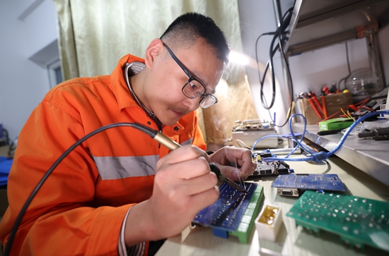 蒋玮琪正在自己房间里研发新设备。通讯员 李金明/摄