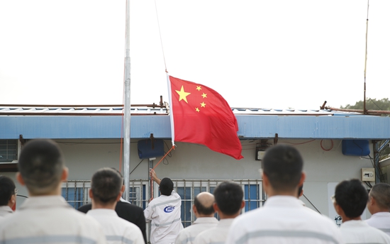 1月29日,中国驻瑙鲁使馆复馆小组举行升国旗仪式。当地时间29日早晨,中国驻瑙鲁使馆复馆小组在位于瑙鲁岛西南部的临时办公地点举行升国旗仪式。这是时隔近19年五星红旗再次在瑙鲁升起。陈国龙/摄(新华社发)