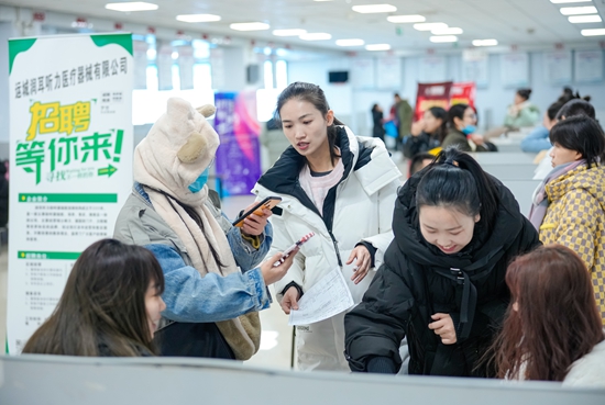 1月21日,山西省运城市,求职者在2024年就业援助月暨困难高校毕业生专场招聘会上咨询岗位信息。视觉中国供图