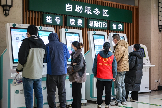 正值大一寒假,南京工业职业技术大学的陈思妍在南京一家医院参与志愿服务工作,负责协助患者挂号、缴费等。山西大学 章子越/摄