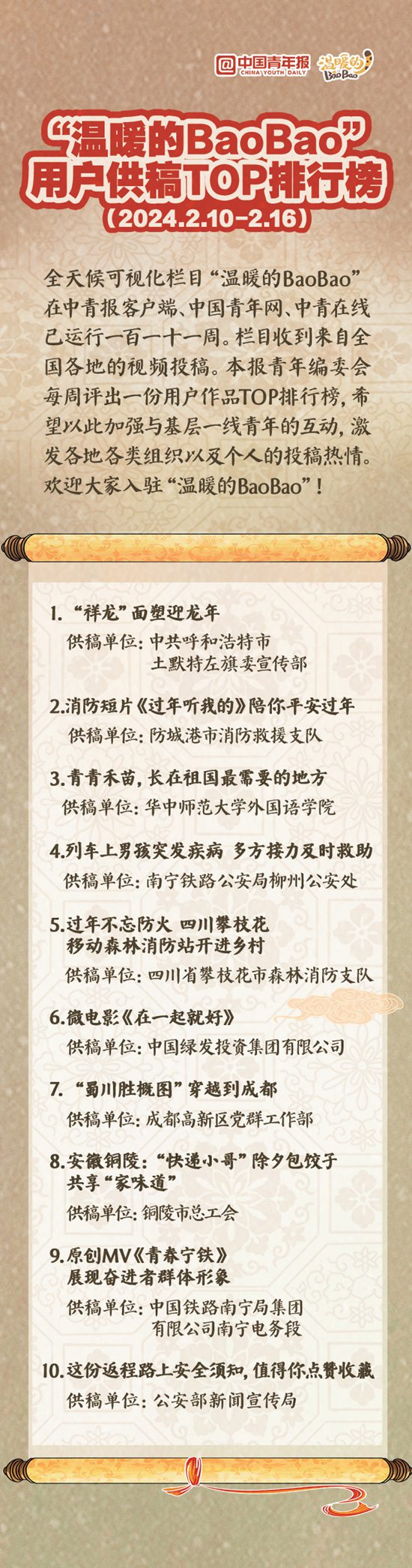 “温暖的BaoBao”用户供稿TOP排行榜(2024.2.10-2.16)