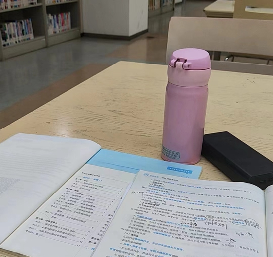 2023年9月,卫薇安在上海市普陀区图书馆复习备考。受访者供图