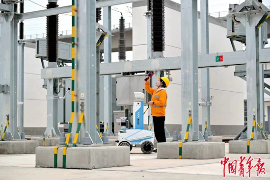 春运期间,中国铁路成都局集团有限公司成都供电段职工和智能巡检机器人,共同检测铁路变电设备关键节点温度、运行声音,提高铁路牵引变电所设备巡检准确性,提升检测分析质效。