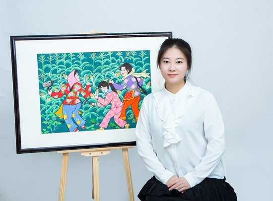 从吉林艺术学院工艺美术专业毕业后,钱璐选择回到家乡,从事农民画、剪纸、窗上斗鸡等非物质文化遗产的传承和创业。