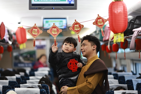 2月22日,在元宵节到来之际,成都客运段在C6378次列车上开展元宵节主题活动,与旅客猜灯谜、画花灯、品元宵,一同庆祝节日的到来。苏志刚/摄
