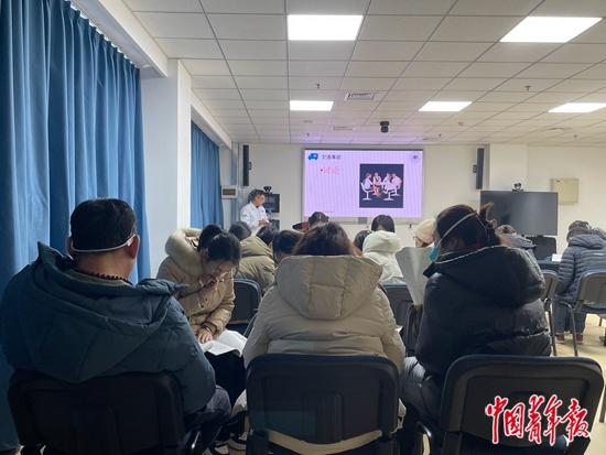 1月23日,社区急救培训现场,学员们进行分组讨论。中青报·中青网见习记者 李丹萍/摄