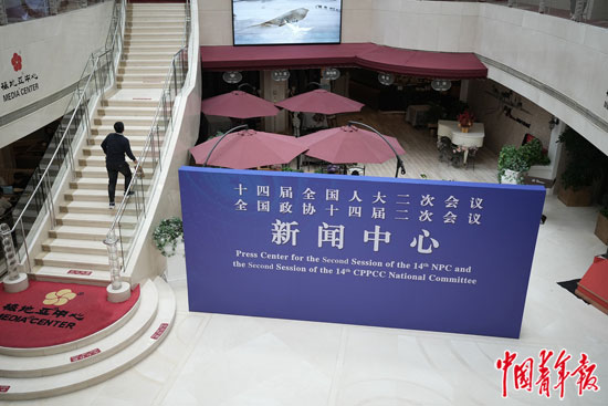 2月27日,北京梅地亚中心,全国两会新闻中心正式启用。目前,已有3000多名中外记者报名采访全国两会。中青报·中青网记者 李隽辉/摄
