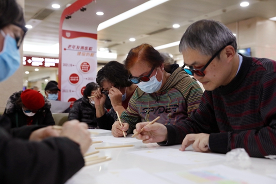 2月28日,参与者戴变色眼镜涂色,体验视网膜色素变性(RP)患者的视力下降生活。当日,复旦大学附属华山医院在门诊大楼开展“点亮生命色彩 探索星辰大海·走近罕见病”科普体验活动,邀请患者家属、志愿者和公众参加。每年2月的最后一天是国际罕见病日。2024年2月29日是第17个国际罕见病日。新华社记者 刘颖/摄