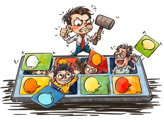 假冒账号在网络上广泛存在,严重扰乱了健康的舆论环境,被比作网络的“牛皮癣”。为了治理这一问题,《互联网用户公众账号信息服务管理规定》等法规和专项行动已经实施,取得了一定成效,但问题依然存在。这些行为背后是因为仿冒可以快速吸引流量和获得利益,加之自媒体平台注册机制不严和缺乏有效监管,给了不法分子可乘之机。此外,大数据算法的推荐机制也无意中放大了这一问题。面对这种情况,加强监管和提高公众的甄别能力刻不容缓。漫画:程璨