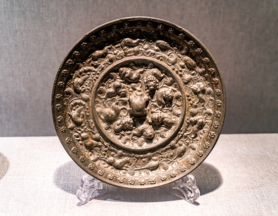 唐代海兽葡萄纹铜镜,洛阳博物馆藏。视觉中国供图