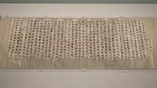 无独有偶,就在前年同一场馆展出的“文明的印记——敦煌艺术大展”中,也展出了一份敦煌研究院藏的晋写本《三国志·吴书·步骘传》残卷。作为“二十四史”评价最高的“前四史”之一,《三国志》不仅是汉末三国历史权威的史料来源,其写本的流传也见证了魏晋南北朝时期丝绸之路上的文化交流。