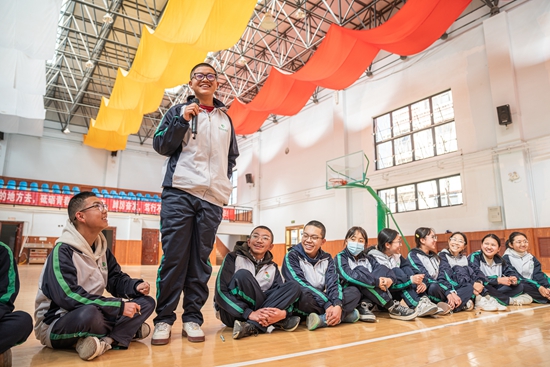 3月1日,拉萨北京实验中学的学生讲述假期生活趣事。西藏自治区拉萨市迎来开学季,各中小学开展形式多样的“开学第一课”活动,迎接新学期的到来。新华社记者 丁增尼达/摄