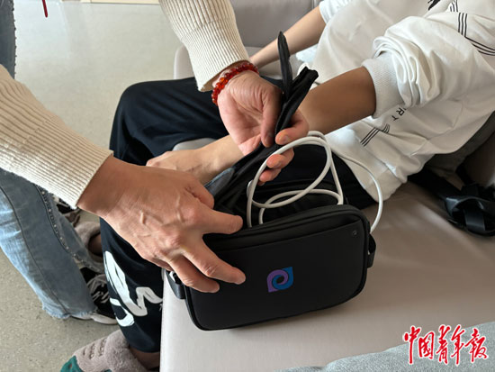 乐乐需要随身携带的人工心脏的电池包。中青报·中青网记者 刘昶荣/摄
