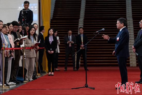 3月8日上午,北京人民大会堂,十四届全国人大二次会议第二次全体会议结束后,生态环境部部长黄润秋在“部长通道”上回答记者提问。