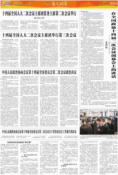 十四届全国人大二次会议主席团常务主席第二次会议举行