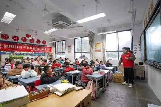 近日,国网浙江省丽水市供电公司青年志愿者走进革命老区王村口,开展“电力小百科乡村行”活动,强化对留守老人、儿童的关心关爱,培育“青丽帮帮团”志愿服务品牌体系,进一步打造公司“青丽青为”团青工作品牌。范乐鹏/摄