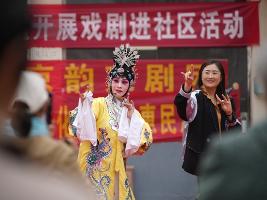 当日是世界戏剧日,各地举行多种活动,戏曲艺术进校园、进社区,让大众感受我国传统戏曲文化的魅力。闫志国/摄(新华社发)