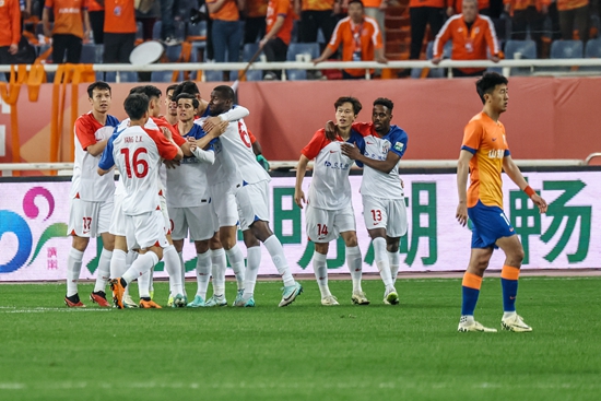 3月31日,上海申花队球员在比赛中庆祝进球。新华社记者 朱峥/摄