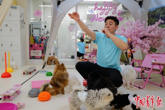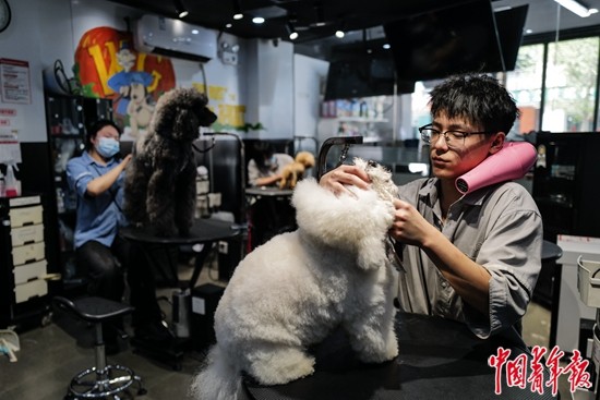 随着宠物数量的增加,相关产业应运而生,也涌现了宠物细分领域的多种新兴职业,如宠物驯导师、造型师、喂养师、摄影师、营养师等,许多年轻人投身其中。