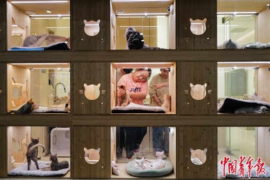 李晨的这家宠物酒店以宠物托管为主,有68间宠物房间,同时开设了针对宠物的教育、餐饮、游泳、美容、电影放映等一系列服务。非节假日会有二三十只宠物入住,“五一”、国庆节、春节等假期会有八九十只入住。