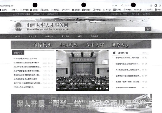 涉案团伙开发的“山西人事人才服务网”。武汉市江岸区人民检察院供图