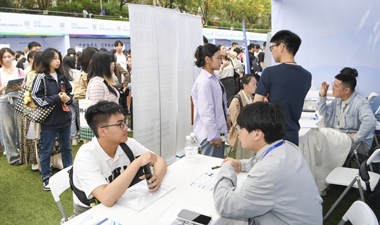 这是4月17日拍摄的双选活动现场。当日,重庆市2024届普通高校毕业生(春季)就业大型双选活动暨百万高校毕业生等青年留渝来渝就业创业行动计划启动仪式在重庆大学举行。来自重庆市70余所高校的一万多名毕业生参加现场双选活动。新华社记者 王全超/摄