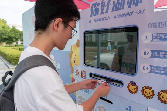 不仅在邮局,“声音小邮局”被广泛应用到了多种场景中。近两年,“声音小邮局”与高校合作开展开学季活动,为学生增添更多开学仪式感。“对于刚离开家的大学生来说,在开学季定制一封明信片,录入自己的声音,亲手贴上邮票,盖上邮戳,投入邮筒,给家里报个平安,在传递信息的同时也在传递不同的情感。”胡梦普说。