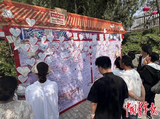 “王婆姻缘墙”前年轻人络绎不绝。中青报·中青网记者 夏瑾/摄
