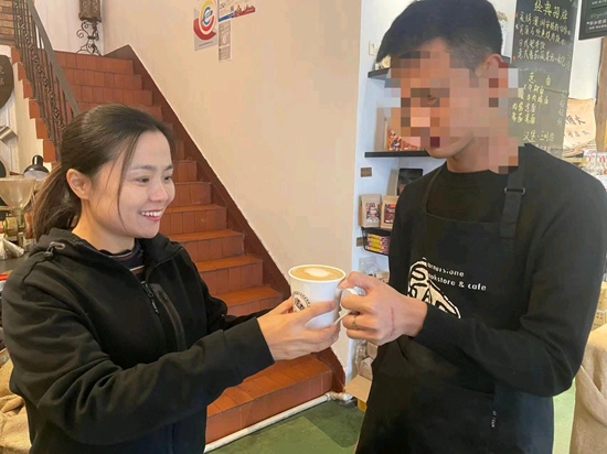 司法社工陪同帮教的未成年人体验做咖啡师。受访者供图