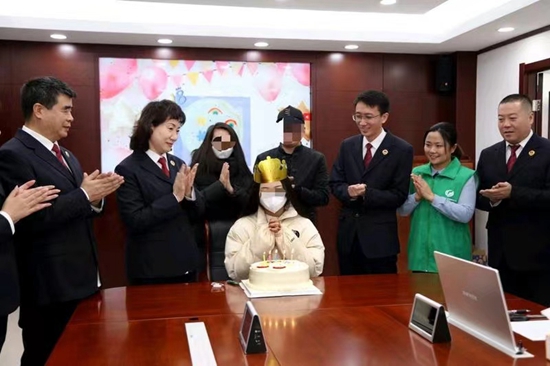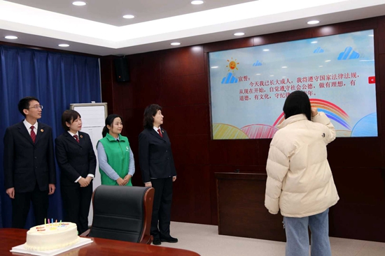 检察官和司法社工为帮教的未成年人举办成人礼。受访者供图