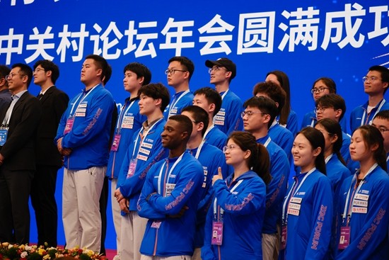 4月29日,中关村国际创新中心,2024中关村论坛年会落下帷幕,大学生志愿者代表上台合影留念。据了解,本次中关村论坛年会,有来自北京21所高校的700余名大学生志愿者,在嘉宾接待、咨询引导、会场服务等11个组别的30类岗位上提供服务,让参会者感受到了北京高校学生的优秀风采。田嘉硕/摄