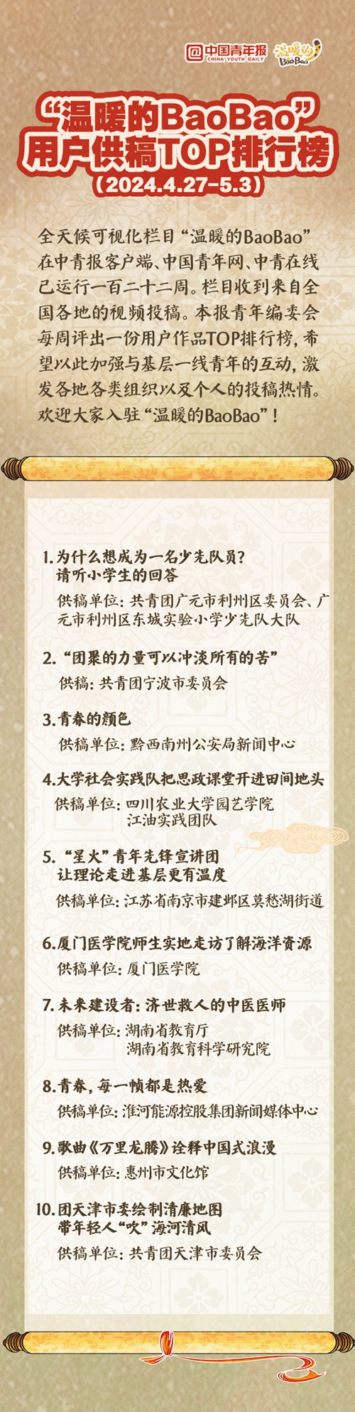 “温暖的BaoBao”用户供稿TOP排行榜