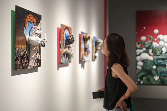 “米格尔·安赫尔·帕亚诺:悟—物”展览上,一位女士正在端详作品。UCCA尤伦斯当代艺术中心供图