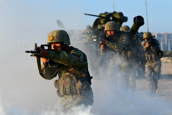 陆军某合成旅“杨根思连”官兵从严从难开展实战化训练,提升官兵打赢能力,图为载员下车战斗。季鹏/摄