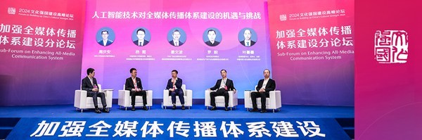 2024文化强国建设高峰论坛“加强全媒体传播体系建设”分论坛上,嘉宾交流人工智能技术发展带来的机遇与挑战。