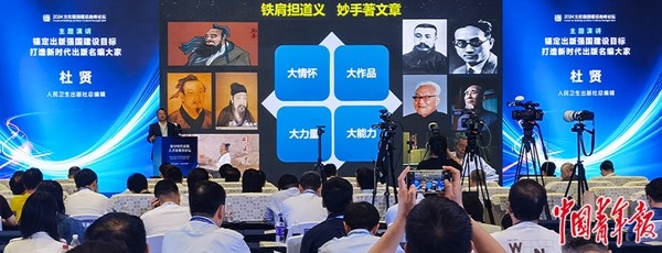 2024文化强国建设高峰论坛“数字时代出版人才发展分论坛”上,人民卫生出版社总编辑杜贤作主题演讲。(中青报·中青网记者 武欣中)