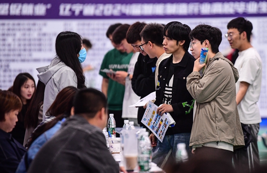 5月23日,辽宁省2024届智能制造行业高校毕业生校园专场招聘会在沈阳工学院举行。据了解,本次双选会吸引了中煤科工机器人科技有限公司、零跑汽车、长城汽车、河北燕山钢铁集团、沈阳地铁集团等全国多个省市的百余家企业,提供了3000余个优质就业岗位。视觉中国供图