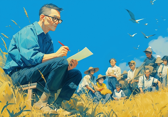 AI生成的柳青在乡村写作的场景。AI图片生成:程璨