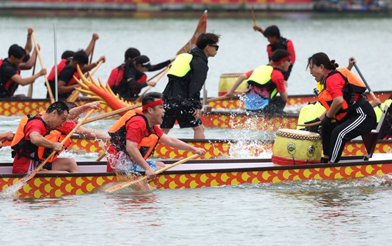 端午节临近,各地举行龙舟赛、龙舟巡游等活动,迎接传统节日的到来。梁子栋/摄(新华社发)