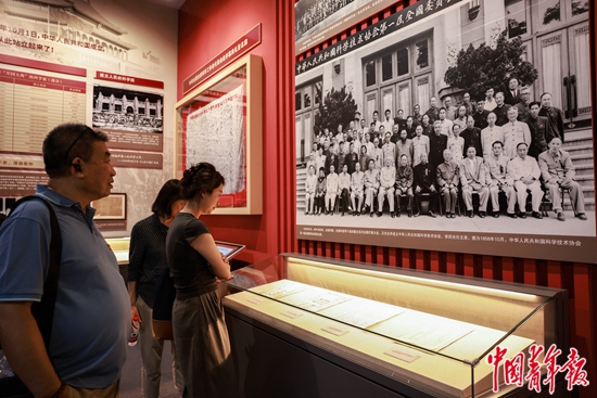 6月19日,北京,中国科学家博物馆,人们在参观“共和国脊梁——中国科学家博物馆馆藏精品展”。中国科学家博物馆毗邻中国科学技术馆,5月30日起向社会公众开放并举办首展系列活动,总展览面积为5000平方米。该馆致力于展示中国科学家形象、弘扬科学家精神,打造科技工作者的精神殿堂。中青报·中青网记者 曲俊燕/摄