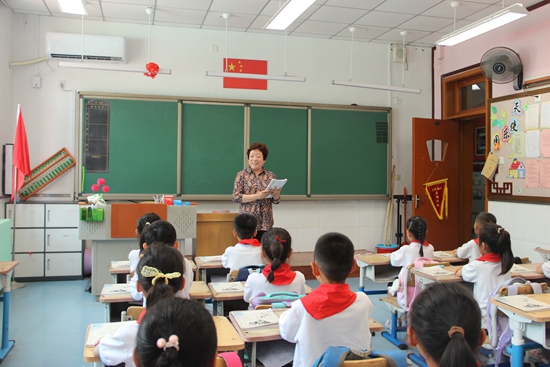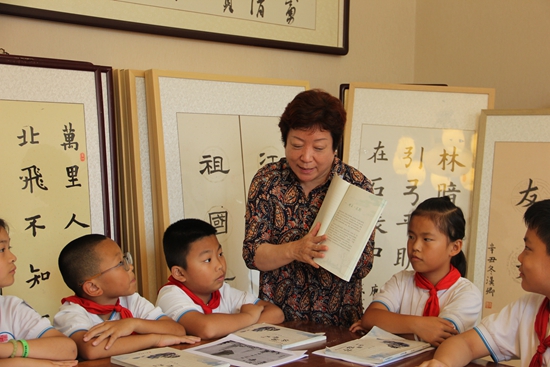 张燕玲给北京市大兴区第七小学的孩子们讲授国学经典。受访者供图